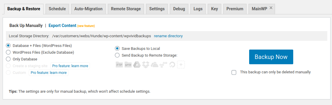 Bisher haben mir diese Funktionen der kostenlosen Plugin-Variante stets ausgereicht. Eine Übersicht der weiteren Funktionen, die unter anderem in der Pro-Version enthalten sind, kannst du auf der Webseite von WPvivid einsehen.